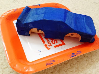 Well, much to my disappointment, the craft was just for kids and I was considered their "adult supervisor". The kids were give pieces of wood carved into the shape of a car, 3 long nails, 2 short nails, wheels and a hammer and were told to construct a race car. After construction, they painted their cars and applied stickers. Well I was {and still am} extremely jealous!! The craft was sooooo cool!! I loved it and so did the kiddos.